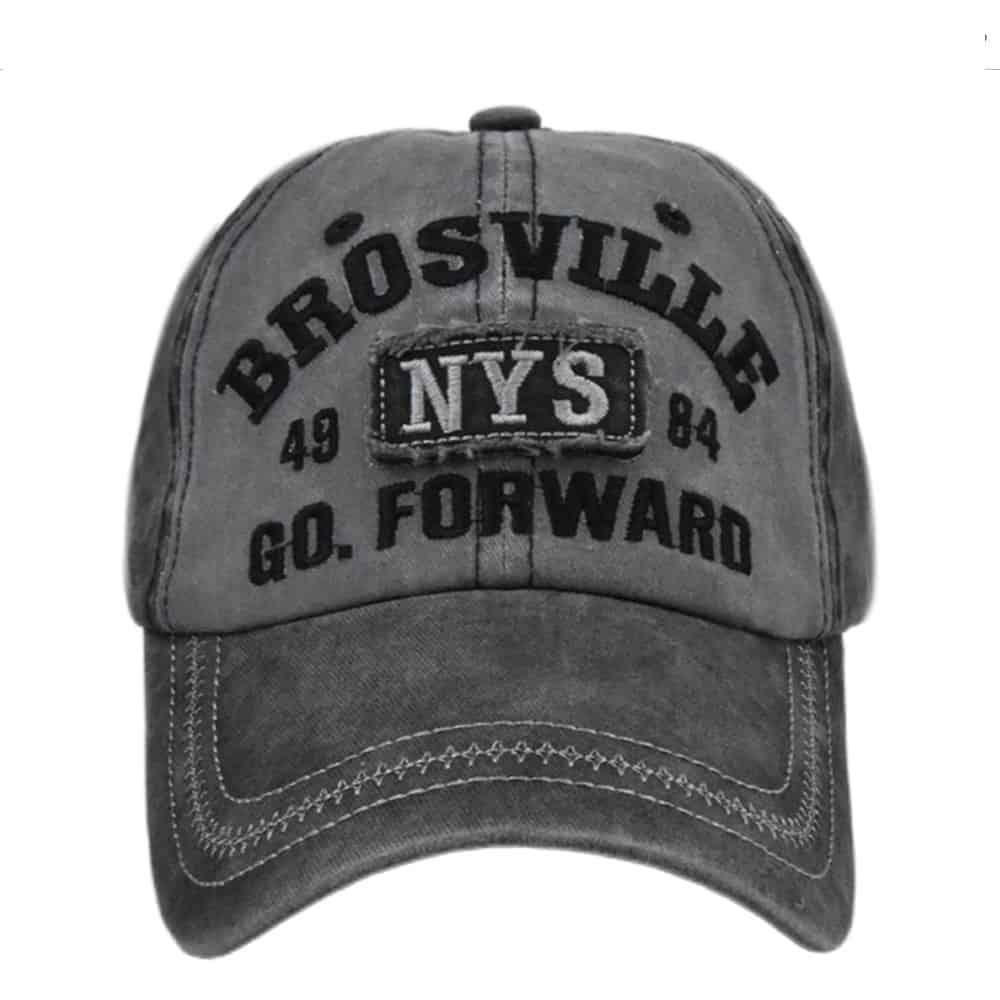 The Brosville NYS Baseball Cap is made of 100% high quality cotton. It is a 6-panels cap with breathable eyelets and an inner cotton sweatband. All details on the Brosville cap are embroidered. The size is adjustable with a metal snap fastener. Available in gray, khaki, blue, red & black.
